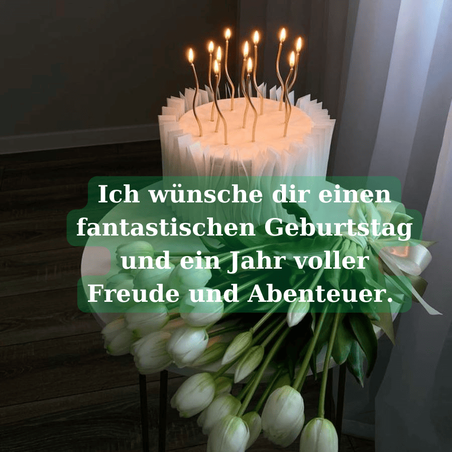 Ich wünsche dir einen fantastischen Geburtstag und ein Jahr voller Freude und Abenteuer. (Harika bir doğum günü ve neşe dolu bir yıl dilerim.)